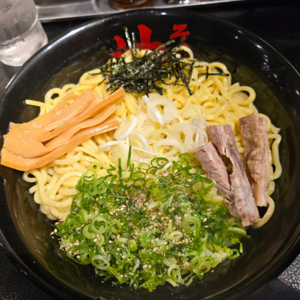 東京都中央区日本橋人形町3-7-13 日本橋センチュリープラザマップで見る山椒の油そばの醤油カエシは山椒が効いて香りも痺れも程良く美味。麺は加水高目の中太ウェブ麺でもちもち弾力。葱どっさり、2種のチャーも満足の了解です。卓上の卵も海苔も使い放題で旨し。
