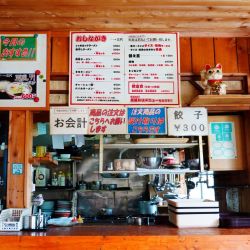 厨房前の受け渡し口にて口頭注文し、現金前払い。