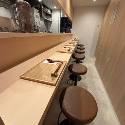 壁やカウンター等は木で誂えてますが、木目がめっちゃ綺麗です! 卓上調味料や商品説明等、カウ... 続きを見る