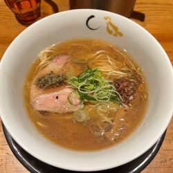 ラーメン屋さんでは無い(RDBがあるとも思ってなかった💦)ので正直まぁこんなものかの範疇である。少しまったりとした薄いスープは確かに煮干しの風味を感じる。ちぢれた中細の麺は一体何グラム何だろう?